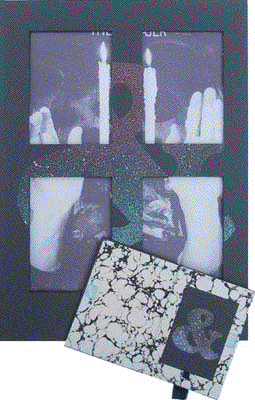 bound, contains pages of wax, glass and knitting. Paintings and digital